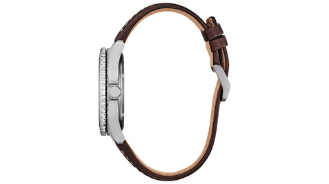 Take action and show your inner drive with the sporty styling of the Brycen, the latest addition to the Weekender collection. Featuring a silver-tone Super Titanium™ case with a brushed finish, the 41mm timepiece is durable in form and function with its matching bi-directional rotating bezel and triple-link bracelet. On the sunray blue dial, highly legible timekeeping elements are at work, with a yellow seconds counter providing a pop of color and a 3 o'clock date window providing daily utility. Featuring our proprietary Eco-Drive technology – powered by light, any light. Never needs a battery. Caliber number J810.