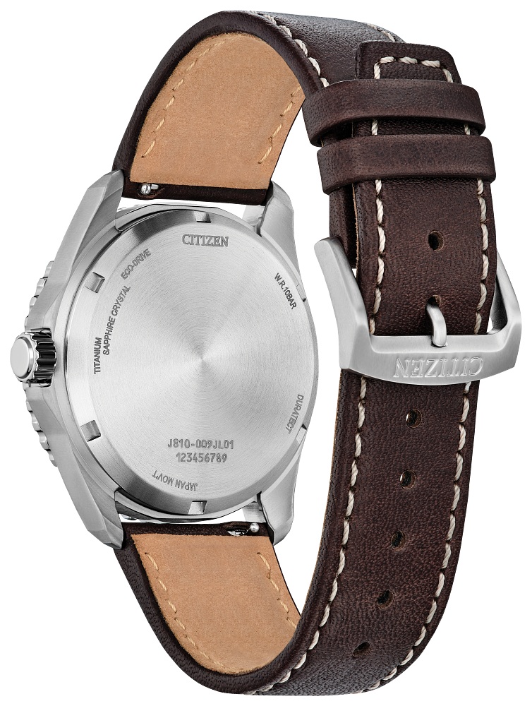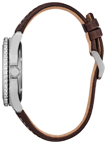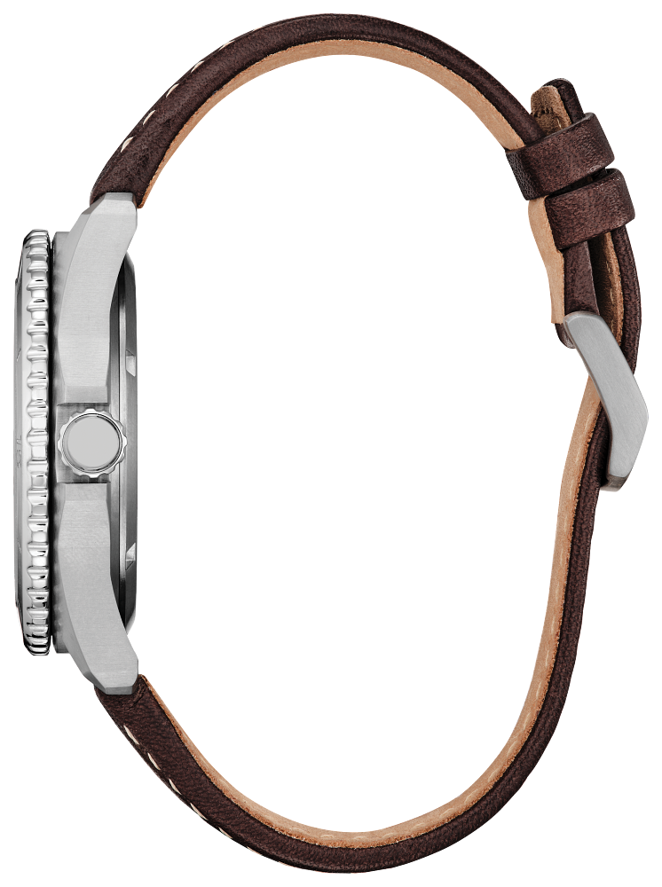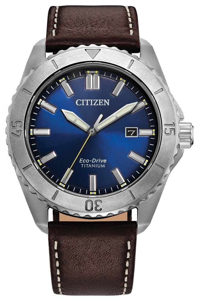 Take action and show your inner drive with the sporty styling of the Brycen, the latest addition to the Weekender collection. Featuring a silver-tone Super Titanium™ case with a brushed finish, the 41mm timepiece is durable in form and function with its matching bi-directional rotating bezel and triple-link bracelet. On the sunray blue dial, highly legible timekeeping elements are at work, with a yellow seconds counter providing a pop of color and a 3 o'clock date window providing daily utility. Featuring our proprietary Eco-Drive technology – powered by light, any light. Never needs a battery. Caliber number J810.