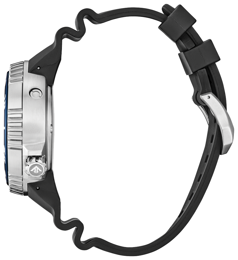The highly legible dial is brought to life through pigment-free ink that uses light – the same light that powers the Eco-Drive technology within – to reflect off the surface of the ink microstructures and create an array of aquatic shades. Functions include time, date, and with a movement requiring exposure to adequate light to then run for 365 days on a full charge, without ever needing a battery. Caliber E365.