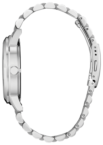 This vintage-inspired timepiece is a paragon of timeless elegance. With a 40.5mm, silver-tone stainless steel case and matching five-link bracelet, the new Rolan features a blue dial with a gradient effect. Applied silver-tone accents and Arabic numerals at the quarter hours add to its charm, while day and date indicators on opposite sides of the top and bottom of the dial place the watch firmly in the realm of retro-style.