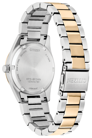 When sporty style meets luxury, you get this latest stunner from Citizen. Joining ready-for-anything wearability with feminine elegance, this time-and-date timepiece is the ultimate day-to-evening watch to wear. The two-tone stainless steel case measures 33mm in diameter and is presented on a matching, 3-link stainless steel bracelet for a sleek, versatile wear on the wrist.