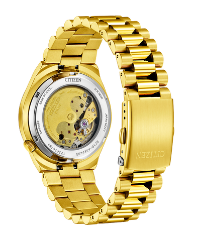 The TSUYOSA Automatic, from the NJ015 series, brings ultramodern sports styling right to your wrist. Executed in a versatile 40mm footprint, the sophisticated design of the watch makes a strong impression via a gold-tone stainless steel case and a seamlessly integrated, matching bracelet. Underneath an anti-reflective sapphire crystal, the sporty timepiece makes use of a sunray green dial, with a 3 o’clock date window and contrasting gold-tone details adding to its classic aesthetic.