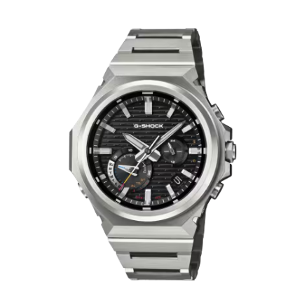 Tough, innovative, functional beauty — reimagined in sharp, minimalist style. The GSTB1000D carries on the G-SHOCK heritage of tough construction and design rooted in functional beauty, reconstructing this legacy to achieve a polished, sleek expression. The bezel goes logo-free for a clean, modern look, while three separate finishes — vertical hairline, circular hairline, and mirror polishing — create a rich and sophisticated textural appeal that changes as light is reflected at different angles. The mirror- and hairline-finished solid stainless-steel band is paired with a tri-fold clasp also crafted from solid stainless steel.