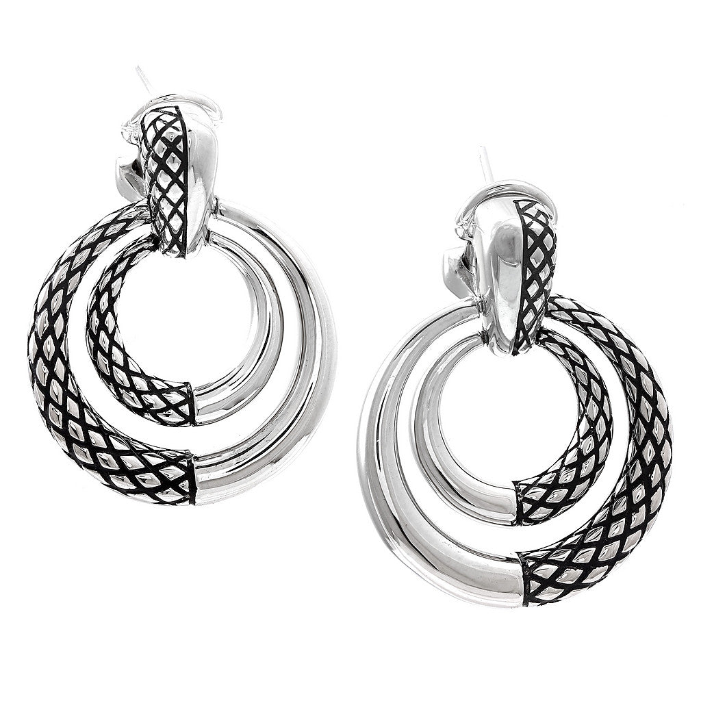 Sterling Silver doorknocker earrings on posts with omega backs. Textured and polished finish.