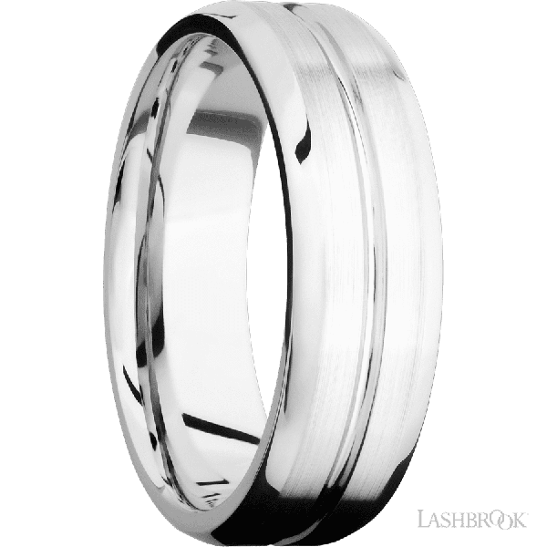 7 mm wide Beveled with Center Accent Groove 14K White Gold band.