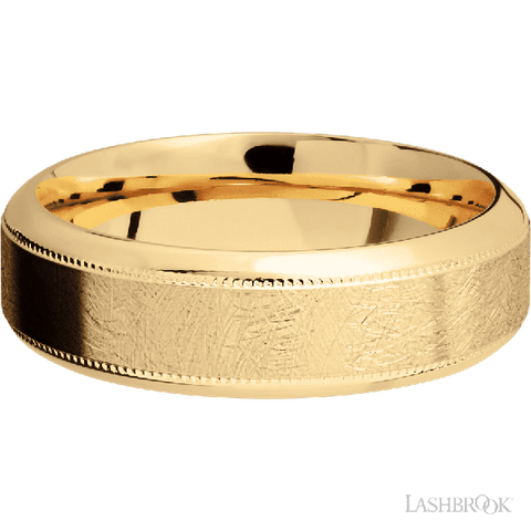 7 mm wide High Bevel Milgrain 14K Yellow Gold band.