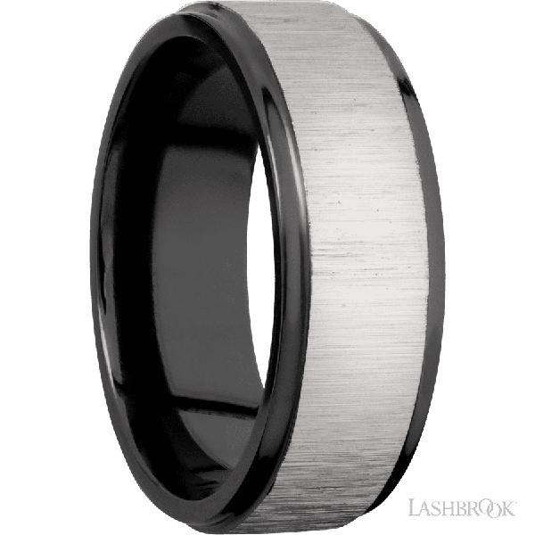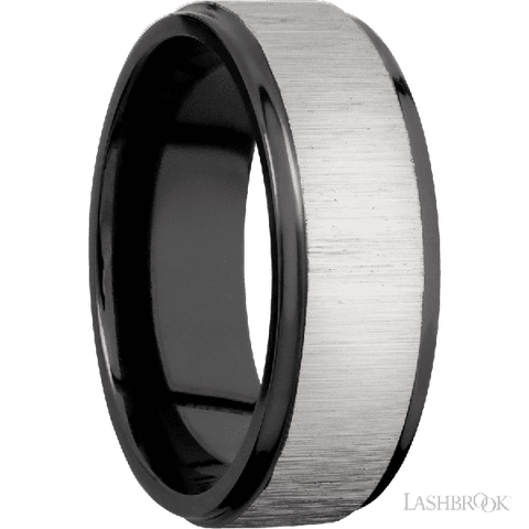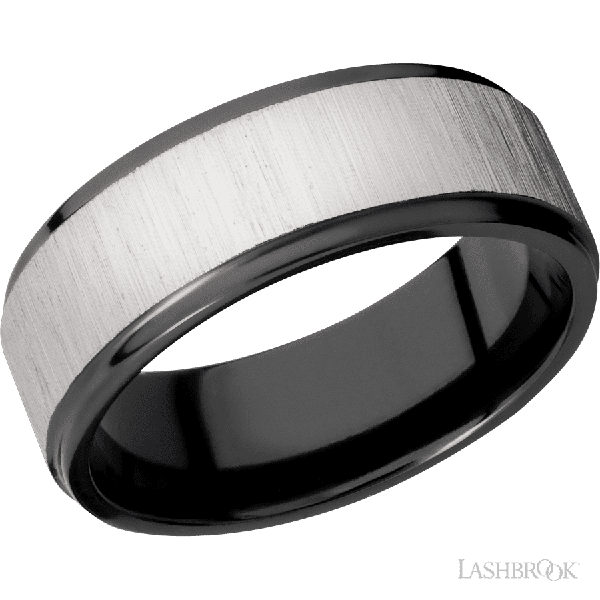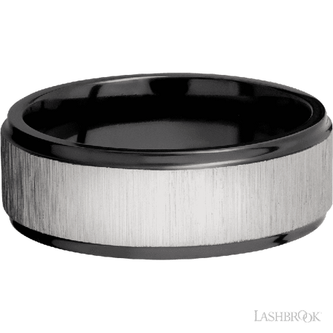 Z8FGE 8 mm wide Flat Grooved Edges Zirconium band.