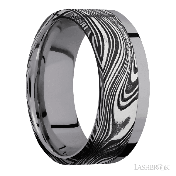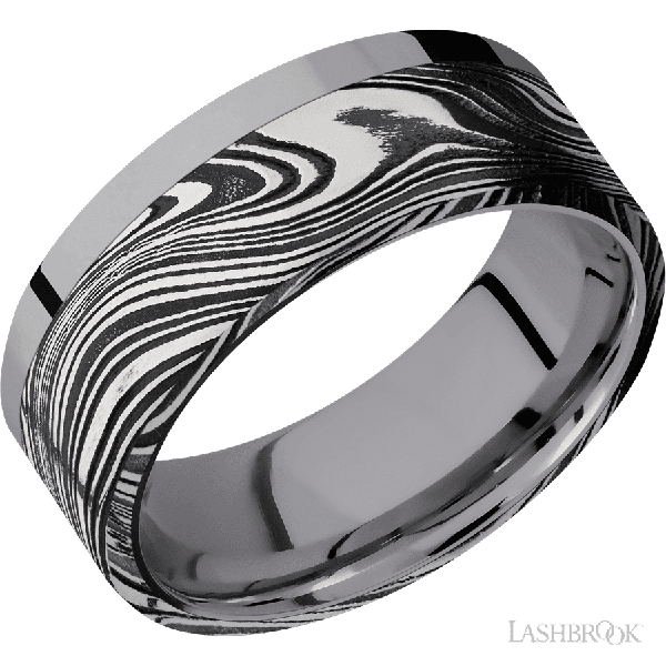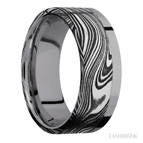 8 mm wide/Flat/Tantalum band with one 6 mm Off Center Edge inlay of Marble.