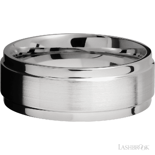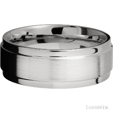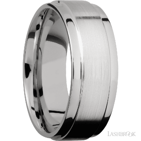 8 mm wide Flat Wide Grooved Edges 14K White Gold band.